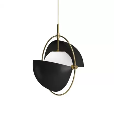 O pendente Copernico Preto tem um design moderno e minimalista que se encaixa em qualquer ambiente. Ele é feito de alumínio com acabamento preto, globo branco e arco dourado.