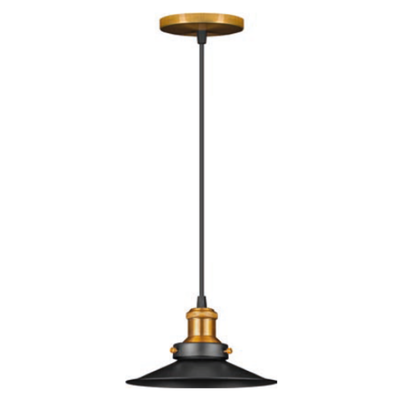 Pendente fabricado em metal e alumínio, com pintura especial de alta resistência na cor preto fosco e em verniz dourado.